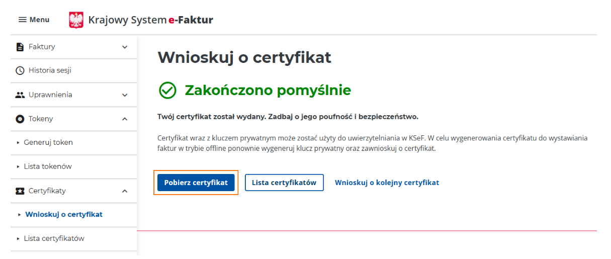 Generowanie certyfikatu do środowiska produkcyjnego odbywa się analogicznie jak dla środowiska demo.