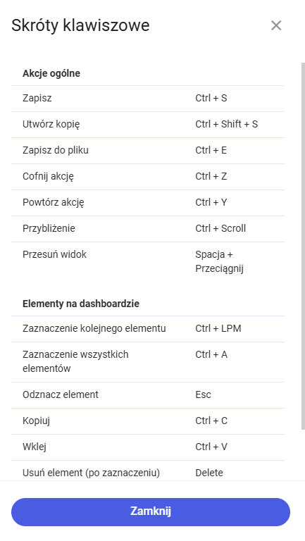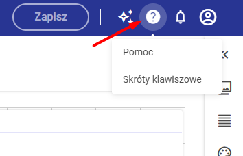 W przypadku pytań lub problemów wynikających z funkcjonowania aplikacji, dla użytkownika została udostępniona zakładka Skróty klawiszowe oraz Pomoc .