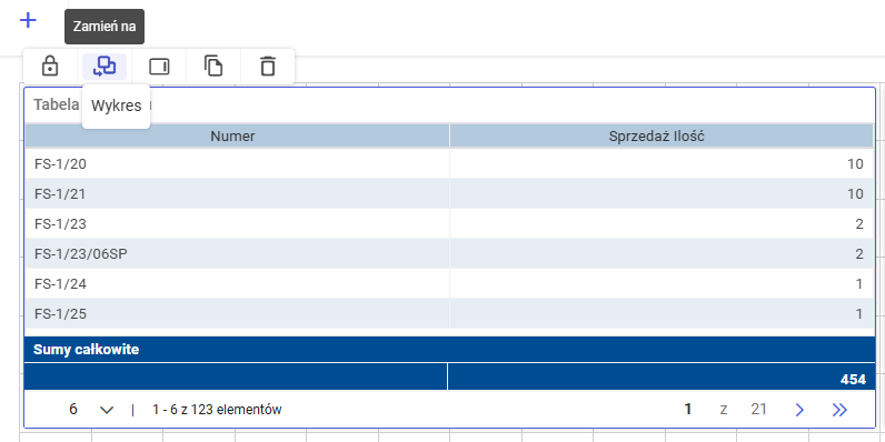 Umożliwia zmianę typu wizualizacji z tabeli na inną kontrolkę (np. wykres) bez utraty przypisanych danych.