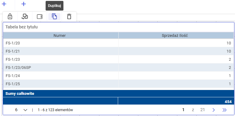 Tworzy kopię tabeli wraz z jej konfiguracją, kolumnami i źródłem danych. Nowy element można niezależnie modyfikować.