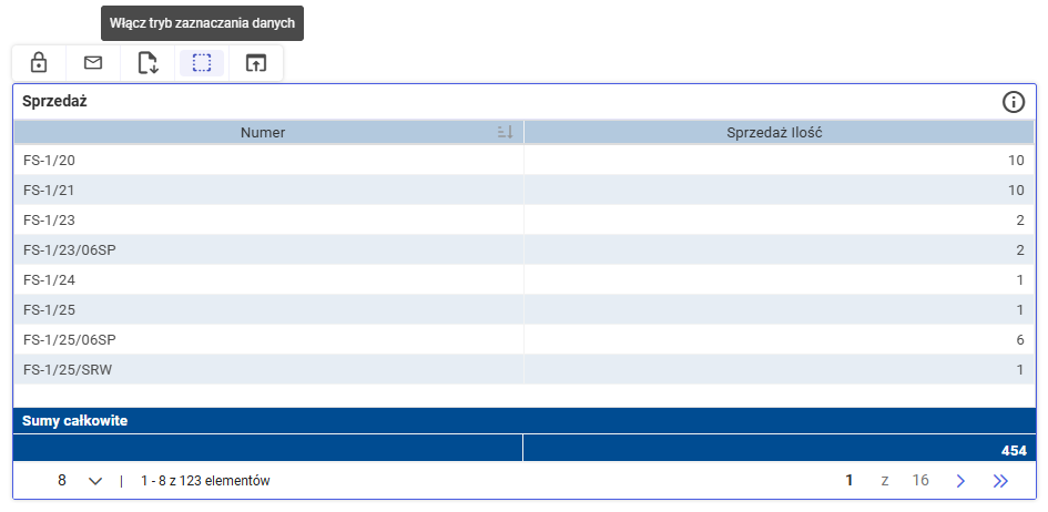 Pozwala zaznaczać komórki lub zakresy danych do dalszej analizy.