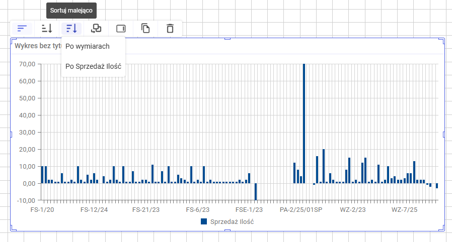 - Po wartości miary – sortuje według wartości liczbowych prezentowanych na wykresie.