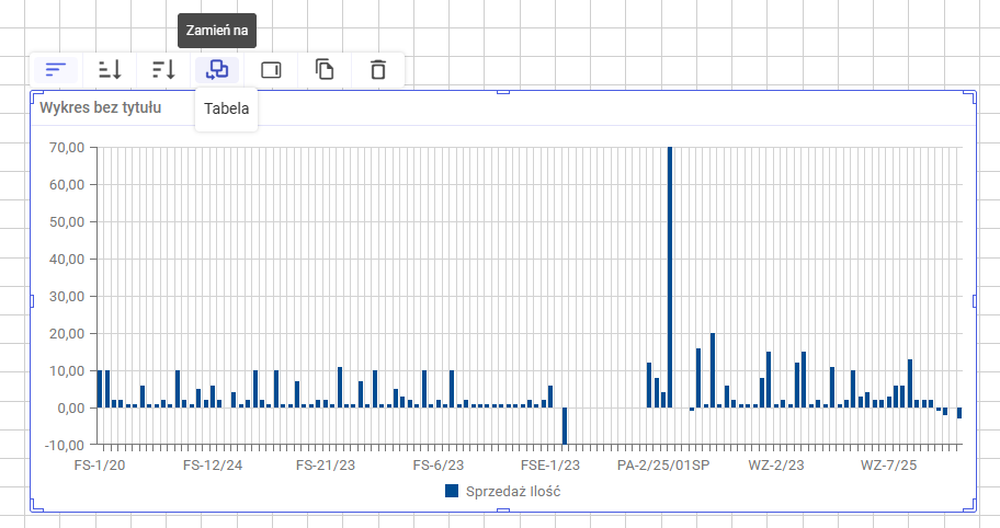 - zaznaczenie wykresu i użycie ikon nad kontrolką,