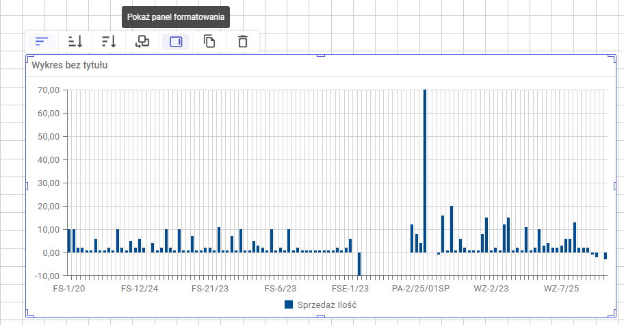 Otwiera prawy panel konfiguracji wykresu, w którym dostępne są wszystkie opcje stylu, kolorów, osi oraz dodatkowych ustawień wizualnych.