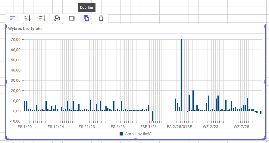 Tworzy kopię wykresu wraz z jego konfiguracją, danymi oraz ustawieniami wizualnymi. Duplikat można następnie niezależnie modyfikować.