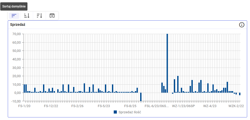 Przywraca domyślną kolejność danych na wykresie zgodną z ustawieniami modelu danych lub pierwotną konfiguracją wizualizacji.