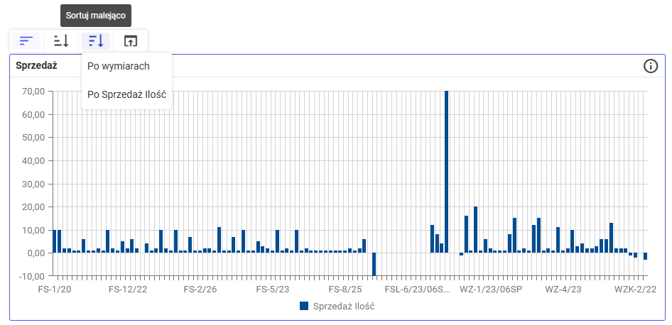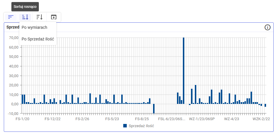 - Po wartości miary – sortowanie według wartości liczbowych (np. sprzedaż ilość).