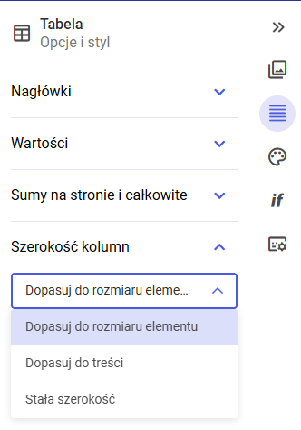 2. Dopasuj do treści – szerokość zależna od długości danych,