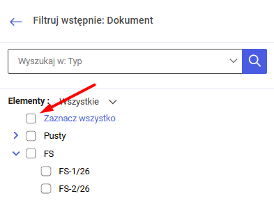 lub filtrować widok listy do elementów Wszystkich, Zaznaczonych lub Odznaczonych.
