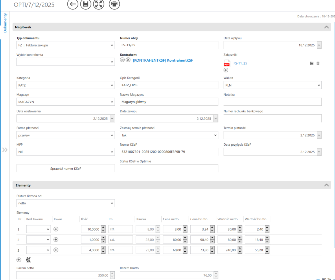 - dla Comarch ERP Optima – wartość = „Optima”,