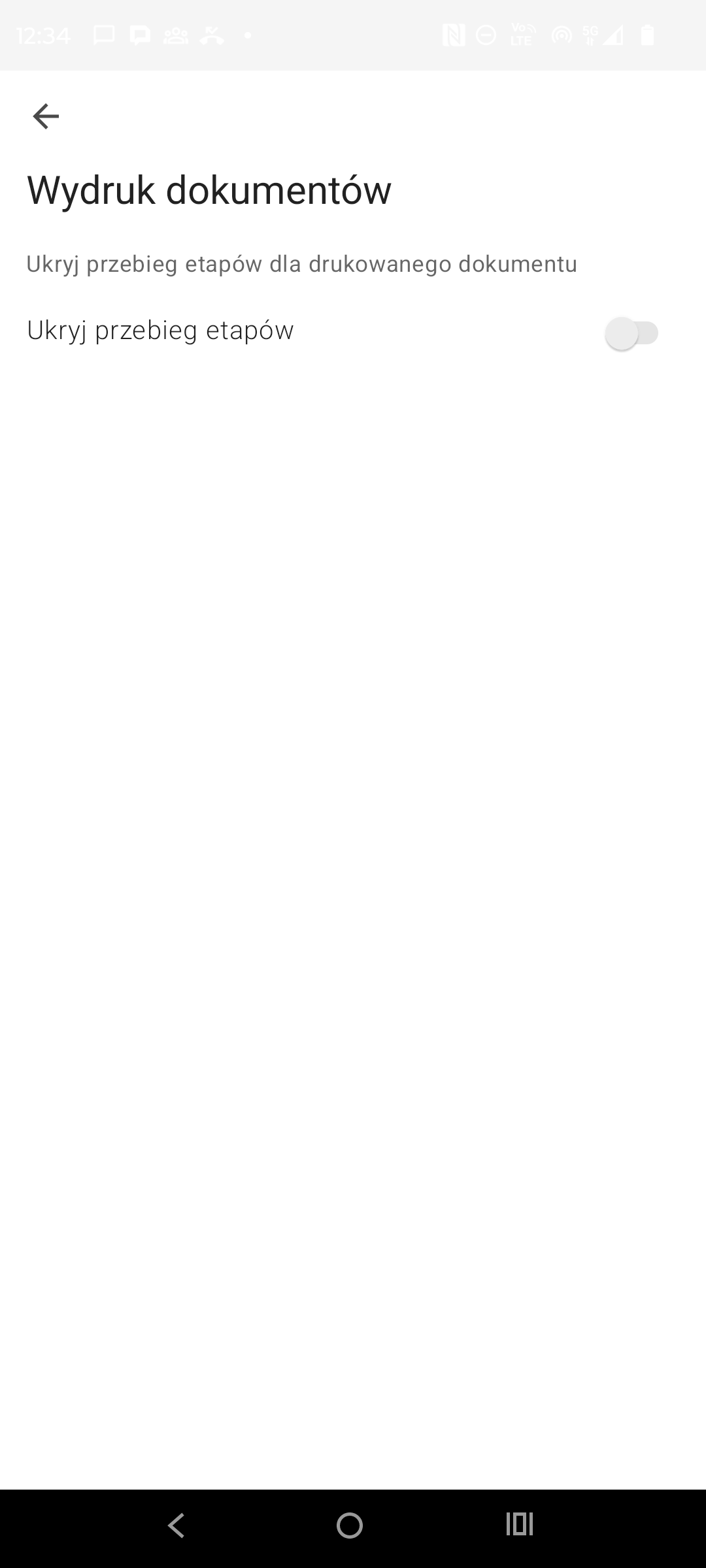 W aplikacji na system Android na zakładce „Konto” dodano nową sekcję „Wydruk dokumentów”, w ramach której operator może zaznaczyć opcję „Ukryj przebieg etapów” – wówczas na wydruku nie będzie widoczny przebieg etapów dla danego dokumentu. Analogiczne ustawienie dotyczące ukrywania etapów zostało dodane bezpośrednio na zakładce „Konto” w aplikacji iOS.