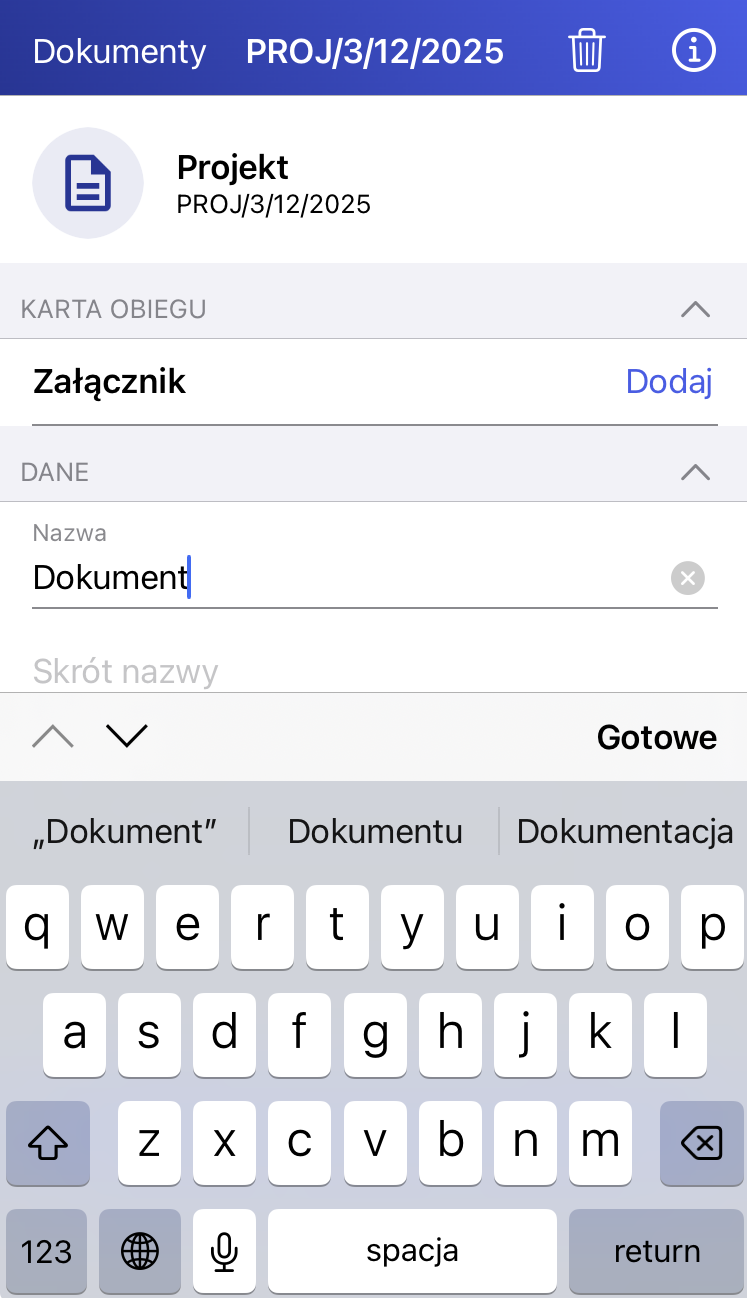 Ukrywanie klawiatury tak, aby nie zasłaniała wartości na liście i zatwierdzanie tekstu w aktywnym polu – do klawiatury dodano przycisk systemowy „Gotowe“ („Done“), w który można kliknąć, aby zamknąć klawiaturę;