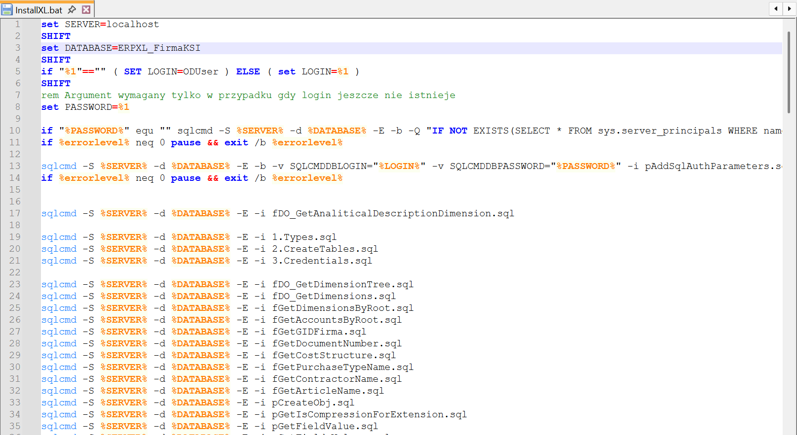 W katalogu BPM Workflow Api\SqlXL należy odnaleźć plik InstallXL.bat i otworzyć go do edycji.