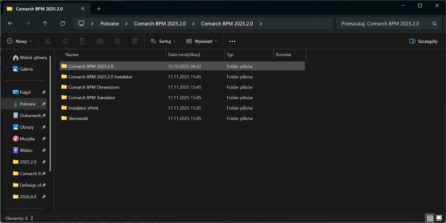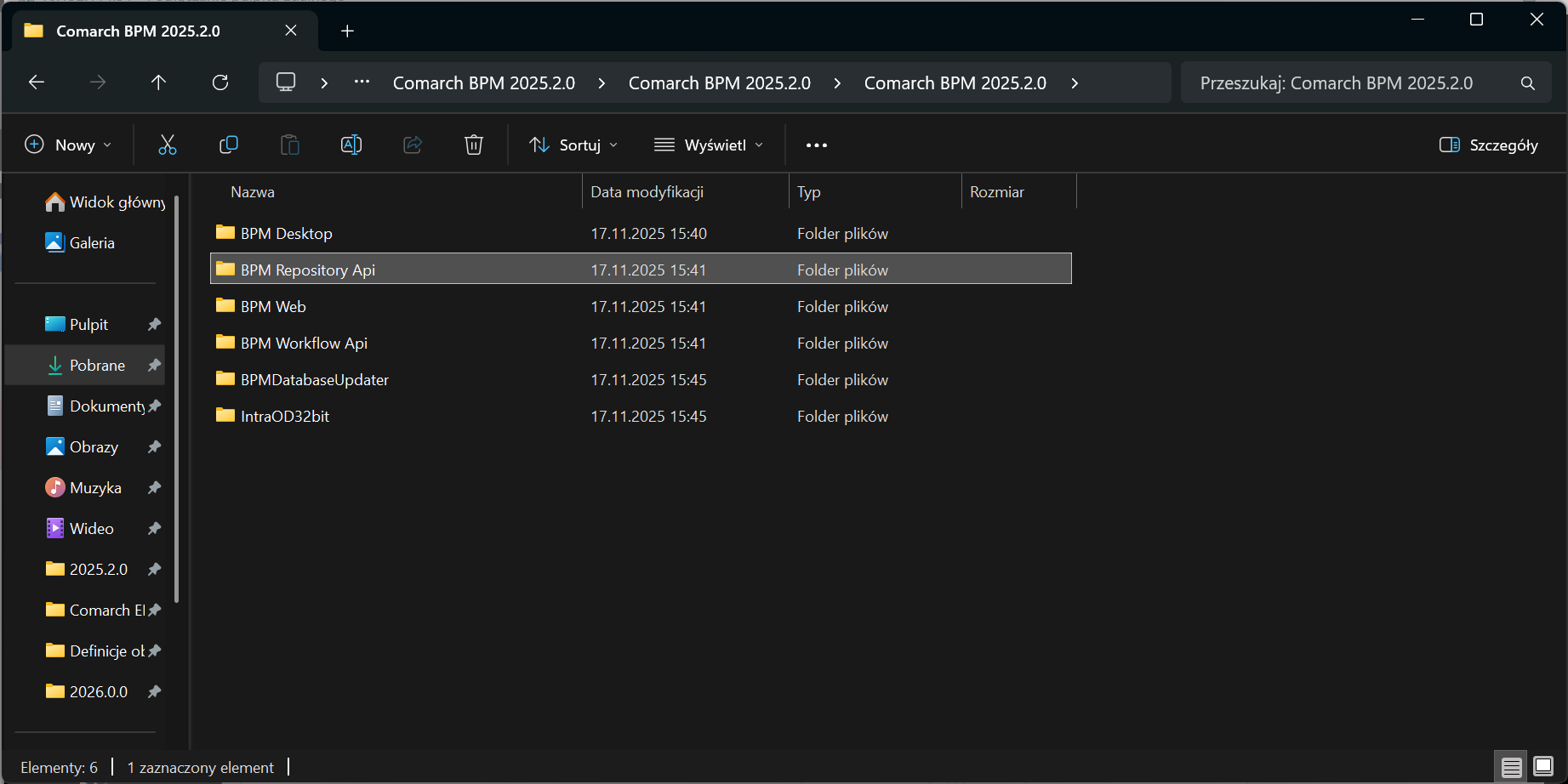 1. W pobranym pakiecie instalacyjnym należy otworzyć folder Comarch BPM {wersja}, a następnie Comarch BPM {wersja}, w którym znajduje się folder BPM Repository Api