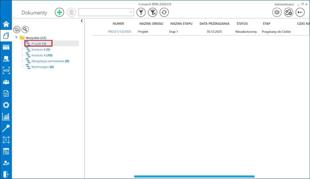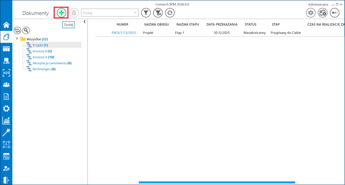 • przejść na zakładkę  [Dokumenty w obiegu]
