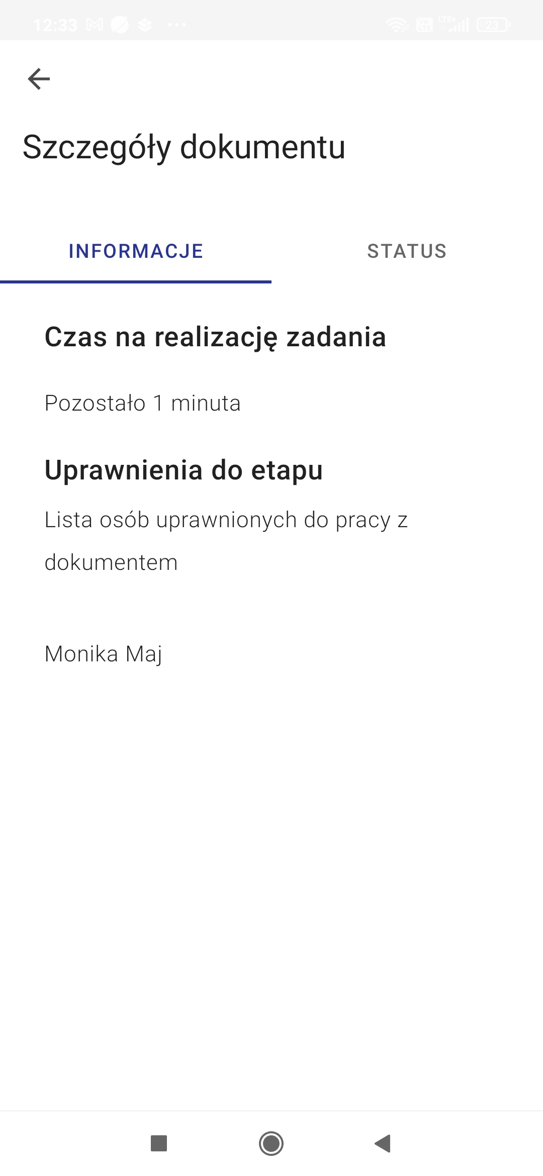 2. Status – w ramach tej zakładki widoczna jest informacja, na jakim etapie znajduje się dokument, do kogo jest przypisany i kiedy został przekazany.
