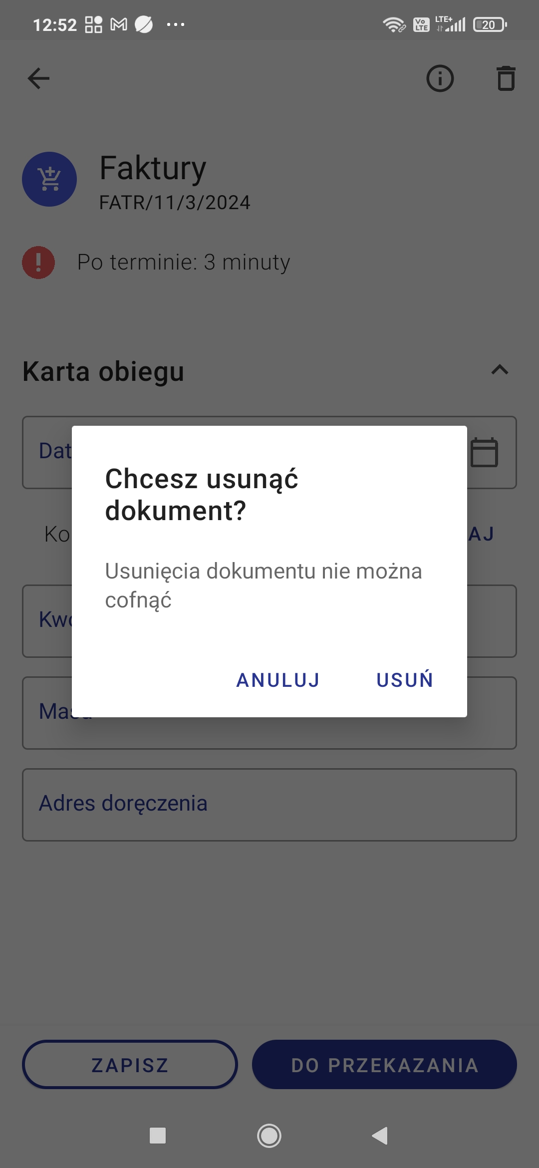 [Usuń] – nastąpi powrót na listę dokumentów, a dokument zostanie usunięty.
