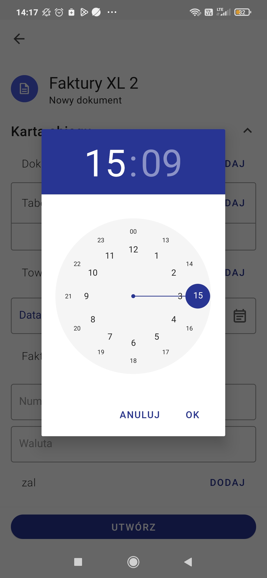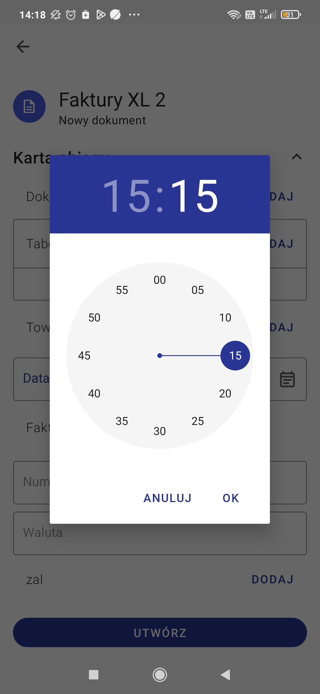 Analogicznie, jeśli operator wybrał godzinę i minuty, ale chciałby edytować minuty - wówczas wystarczy, że kliknie na minuty w górnej części okna, a następnie wybierze poniżej na tarczy zegarowej odpowiednią liczbę minut .
