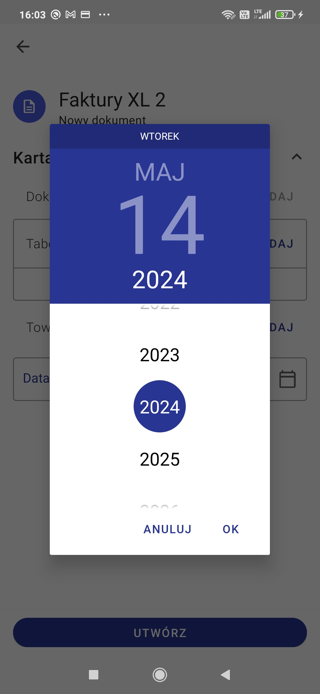 Jeżeli na definicji kontrolki typu Data i godzina w aplikacji desktop w ramach pola "Czas" wybrano opcję "Tak", wówczas po wyborze roku oraz miesiąca i zatwierdzeniu wyboru przyciskiem
