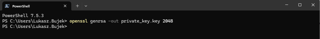 - Polecenie tworzy klucz prywatny o nazwie private_key.key o długości 2048