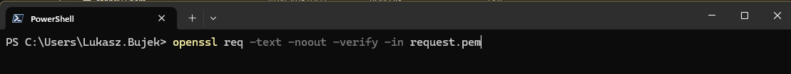 - Po utworzeniu żądania CSR można zweryfikować jego zawartość za pomocą polecenia: