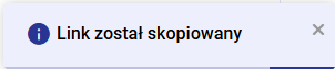 Po kliknięciu w przycisk „Kopiuj link“ lub „Kopiuj link wewnętrzny“ link zostanie skopiowany i wyświetli się informujący o tym komunikat.