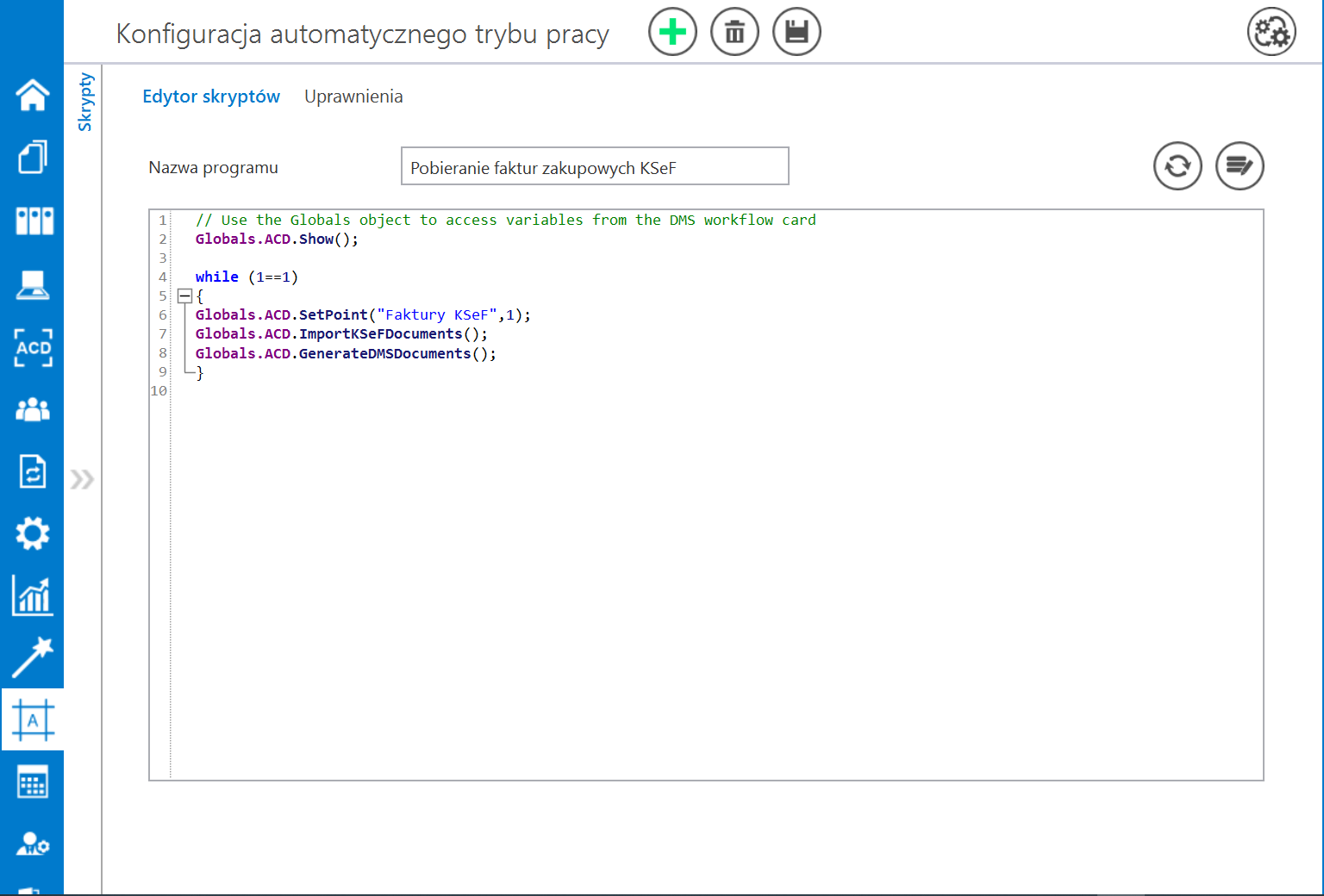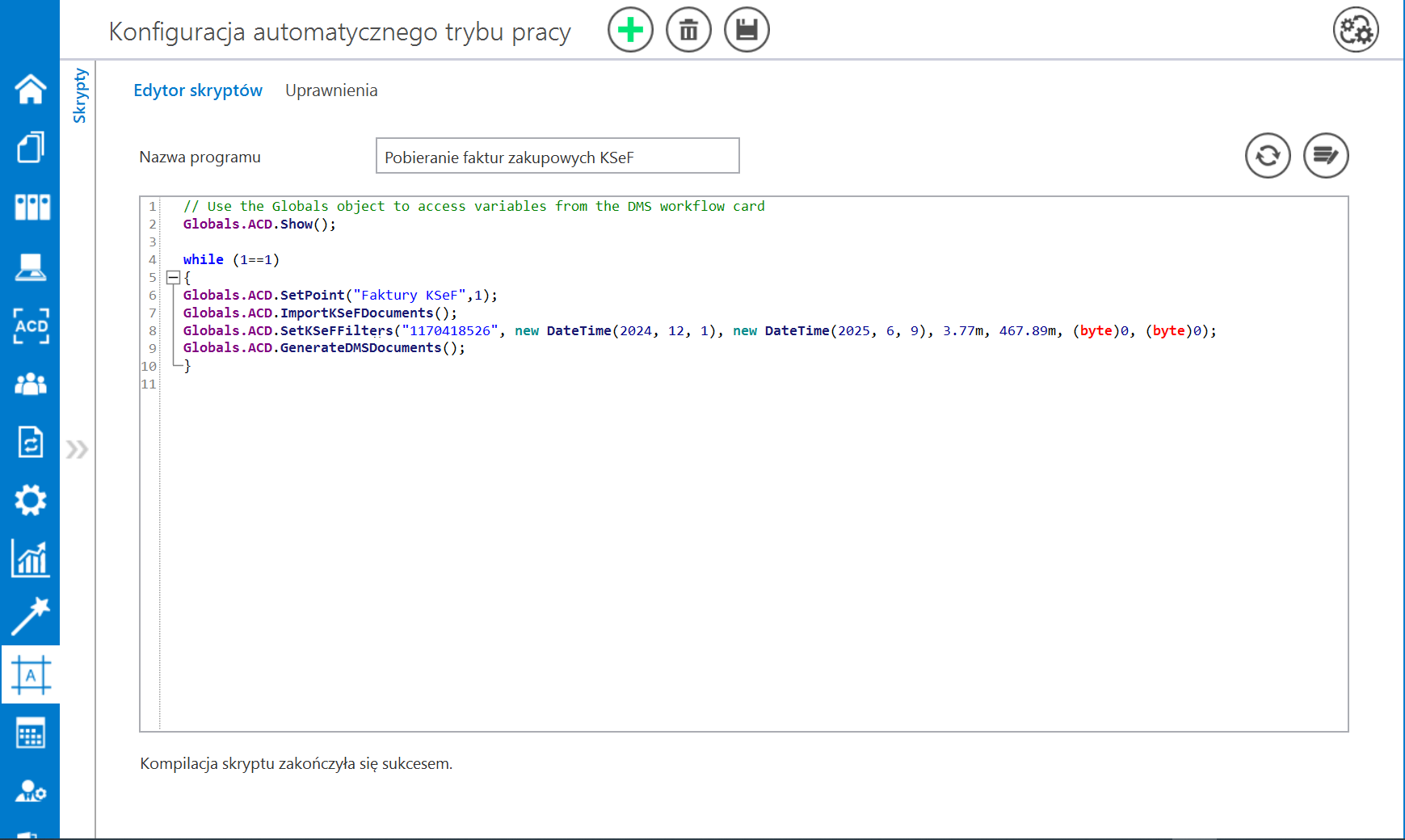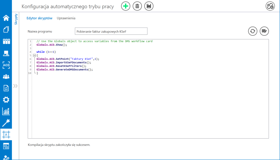 W wersji 2025.2.0 umożliwiono pełną automatyzację importowania oraz generowania dokumentów przez punkty ACD typu „Import dokumentów zakupu z KSeF”.