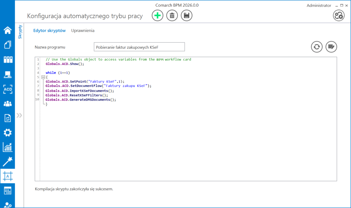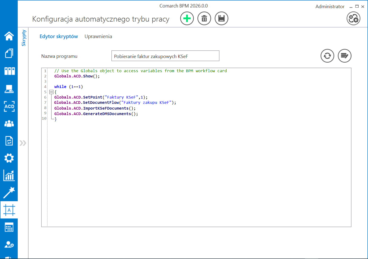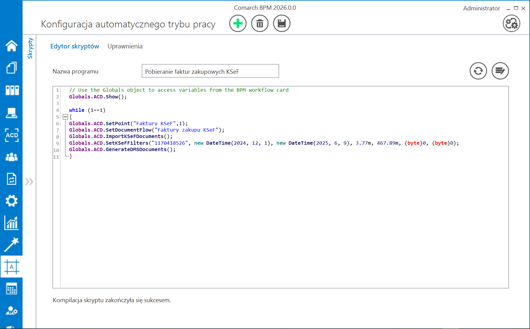W wersji 2025.2.0 umożliwiono pełną automatyzację importowania oraz generowania dokumentów przez punkty ACD typu „Import dokumentów ze skrzynki e-Doręczenia” i „Import dokumentów zakupu z KSeF”.