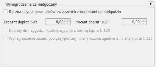 Procent dopłat ‘100’ – określenie procentu dopłat za nadgodziny standardowo naliczanych jako 100%,