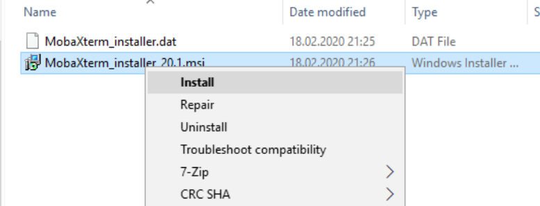 Poniższe zrzuty ekranu przedstawiają instalację MobaXterm za pomocą pliku .msi.