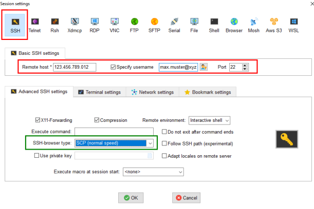 Informacja na temat typu przeglądarki wprowadzonej w ustawieniach Advanced SSH Settings znajduje się na obrazku w opisie ostatniej zakładki z systemem folderów po lewej stronie.