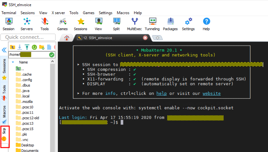 Za pomocą sesji SSH można wydawać polecenia w wierszu poleceń na serwerze Linux. Analogicznie do sesji RDP tworzy się ją za pomocą metody PopUp i nowej sesji.