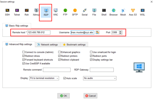 Aby uruchomić kokpit sterujący, potrzebna jest sesja RDP, którą definiuje się w MobaXterm.