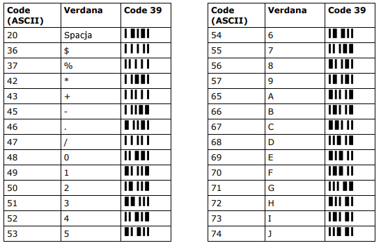 Jak można zauważyć, pojedynczy znak z zestawu znaków kodu kreskowego zawiera wszystkie elementy (paski i przerwy) niezbędne do zakodowania danego znaku.