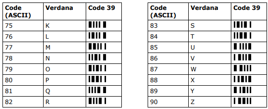 | Code 39 | 12 pt | 4 pt, 8 pt | 2,8 pt, 5,5 pt, ≥ 8 pt |