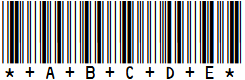 Nie jest to jednak jeszcze prawidłowy kod kreskowy, ponieważ nadal brakuje co najmniej znaków początkowych i końcowych. Dla Code 39 użytego tutaj jako przykład, znak „*” (ASCII 42) jest określony jako znak startu i stopu. W tym przypadku (kod 39) wystarczy dodać „*” do rzeczywistej informacji po prawej i lewej stronie, tj. po prostu przekształcić ABC123 w *ABC123*: