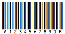 | Codabar | 12 pt | 5 pt, 10 pt | 3,6 pt, 6,9 pt, 10 pt |