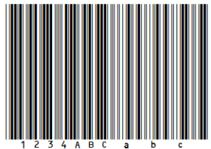 Kod kreskowy zazwyczaj reprezentuje więcej niż jeden znak. Podobnie jak w przypadku zwykłego tekstu, ciągi znaków mogą być również reprezentowane za pomocą czcionek kodów kreskowych i w ten sposób kodowane jako kody kreskowe. Ciąg znaków ABC123, który jest wyświetlany w czcionce Verdana jako ABC123, pojawia się w czcionce Code 39 jako: