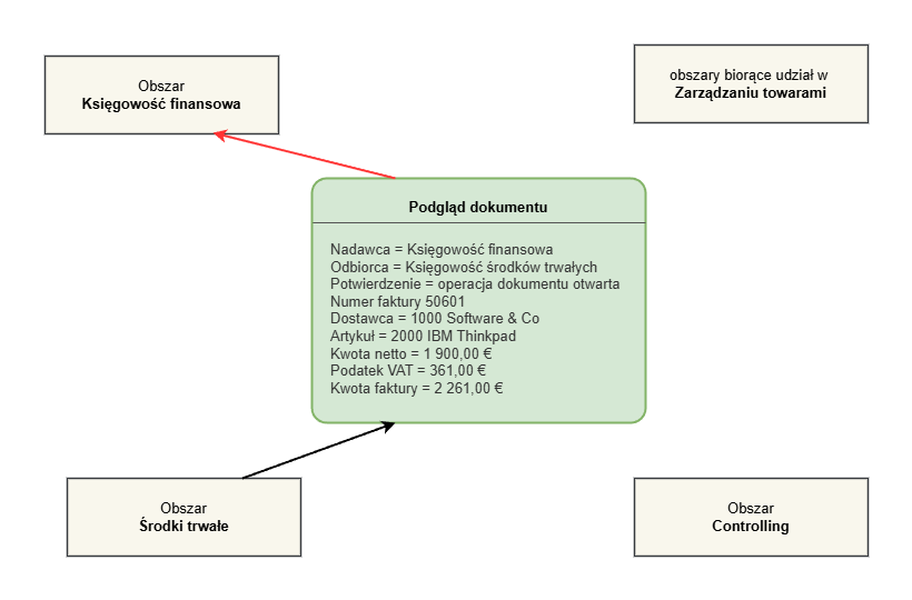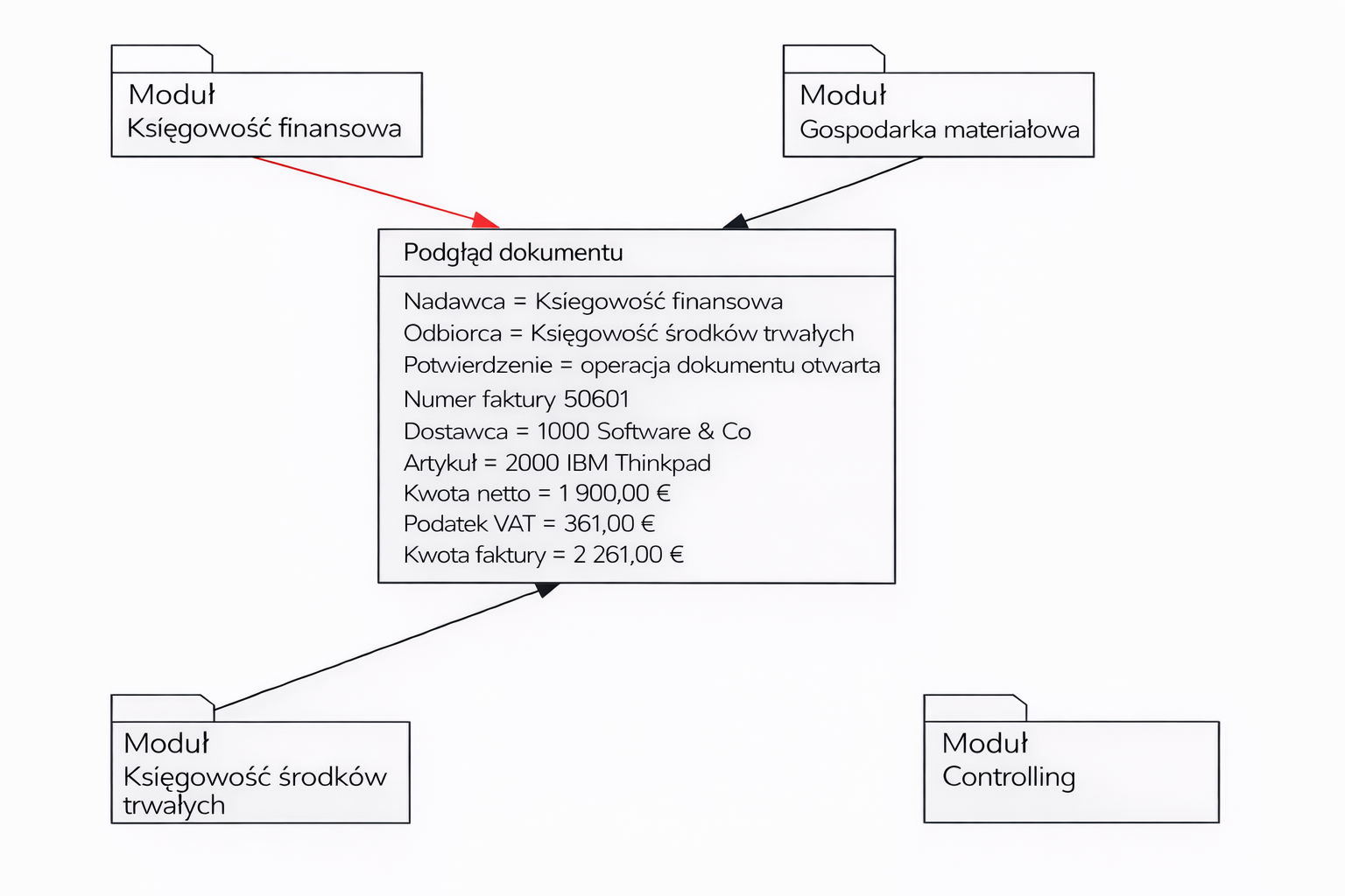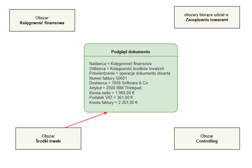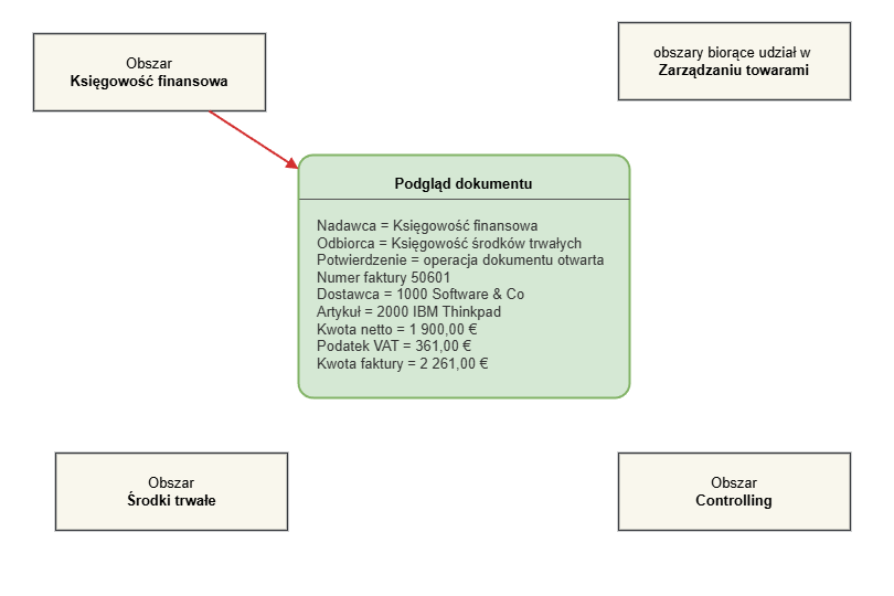 Księgowość finansowa kontynuuje przetwarzanie po wywołaniu obszaru dokumentów przychodzących.