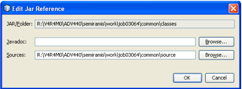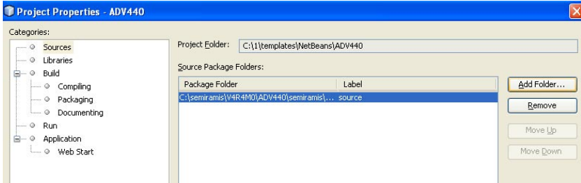 W przykładzie folder R:\V4R4M0\ADV440\semiramis\work\job03064\common\source jest wpisany w polu Sources.