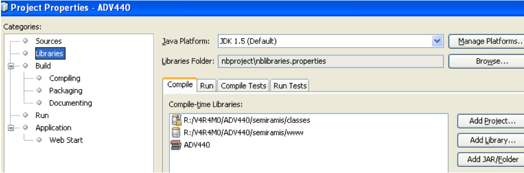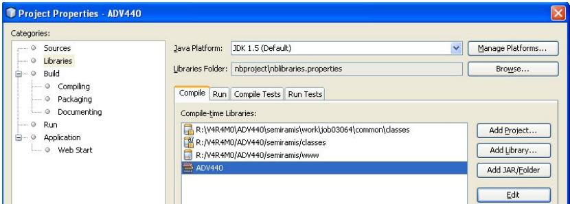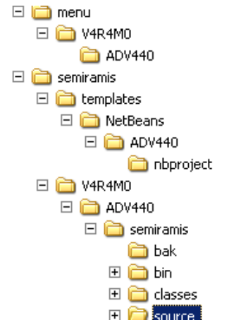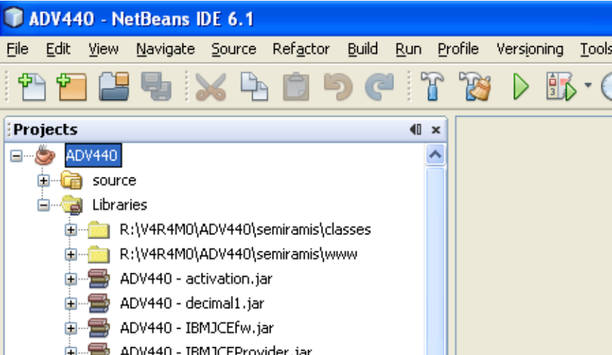 - Biblioteki NetBeans ADV440, w której podsumowano pliki JAR znajdujące się poniżej V4R4M0/ADV440/semiramis/libs