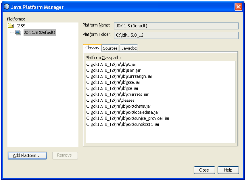JDK musi być skonfigurowany bezpośrednio po otwarciu NetBeans (menu Tools -> Java Platforms). JDK można zdefiniować wybierając przycisk [Add Platform]. W poniższym oknie dialogowym należy wybrać folder instalacyjny JDK. W przykładzie okno dialogowe wygląda następująco: