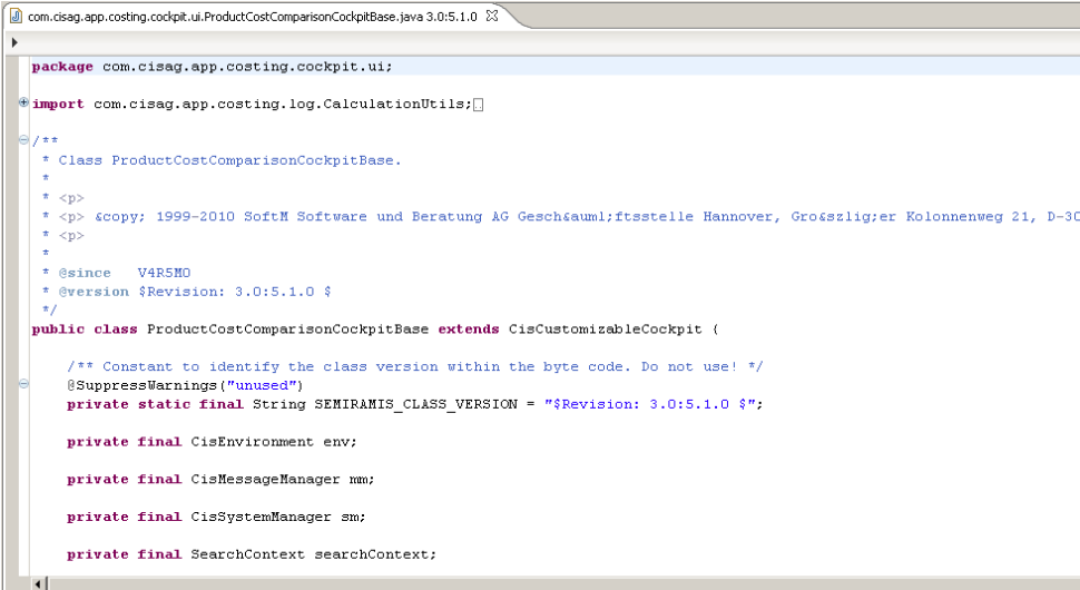 W Comarch ERP Enterprise kod źródłowy pozostaje zgodny z Java 1.4. Ponieważ Java 1.5 jest wymagana jako środowisko uruchomieniowe, można używać nowych interfejsów API Java 1.5. Rozszerzenia składni Java 1.5 nie mogą być jeszcze używane.