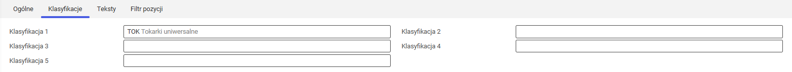 - Klasyfikacja pozycji – umożliwia filtrowanie danych w tabeli według przypisanej klasyfikacji