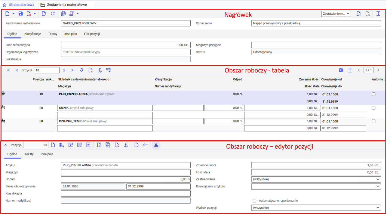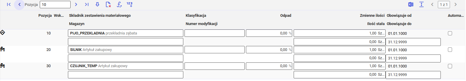 • Obowiązuje do – data zakończenia obowiązywania danej pozycji w zestawieniu materiałowym