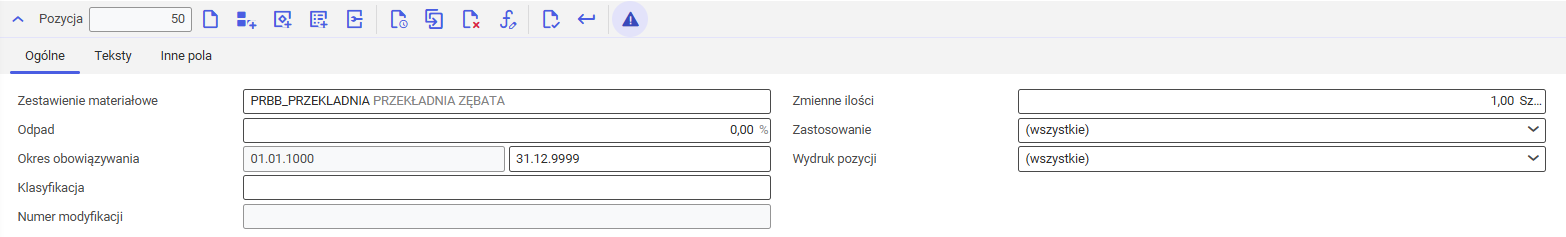 Liczba definiowanych pól dla zestawienia materiałowego jest dowolna.