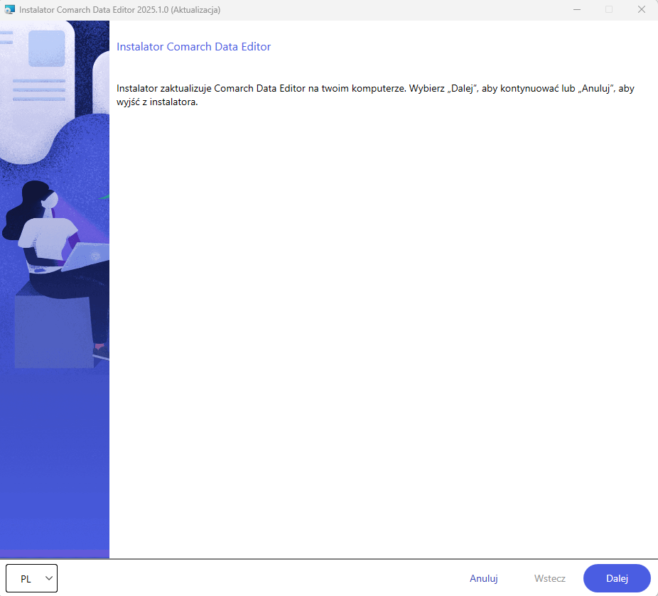 Proces aktualizacji aplikacji składa się z dwóch głównych etapów: uruchomienia nowej wersji instalatora, który aktualizuje pliki aplikacji, a następnie przejścia przez konfigurator w celu weryfikacji istniejących ustawień.