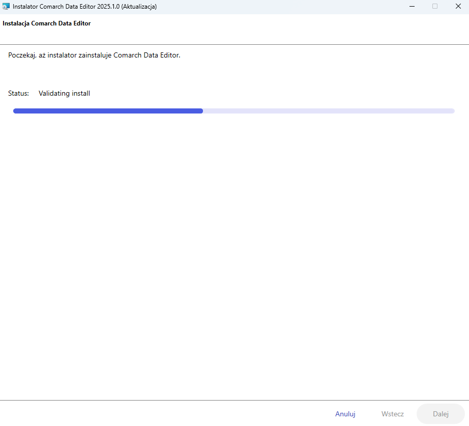 Po naciśnięciu przycisku „Dalej” rozpocznie się proces aktualizacji plików aplikacji, który wyświetli okno z paskiem postępu.