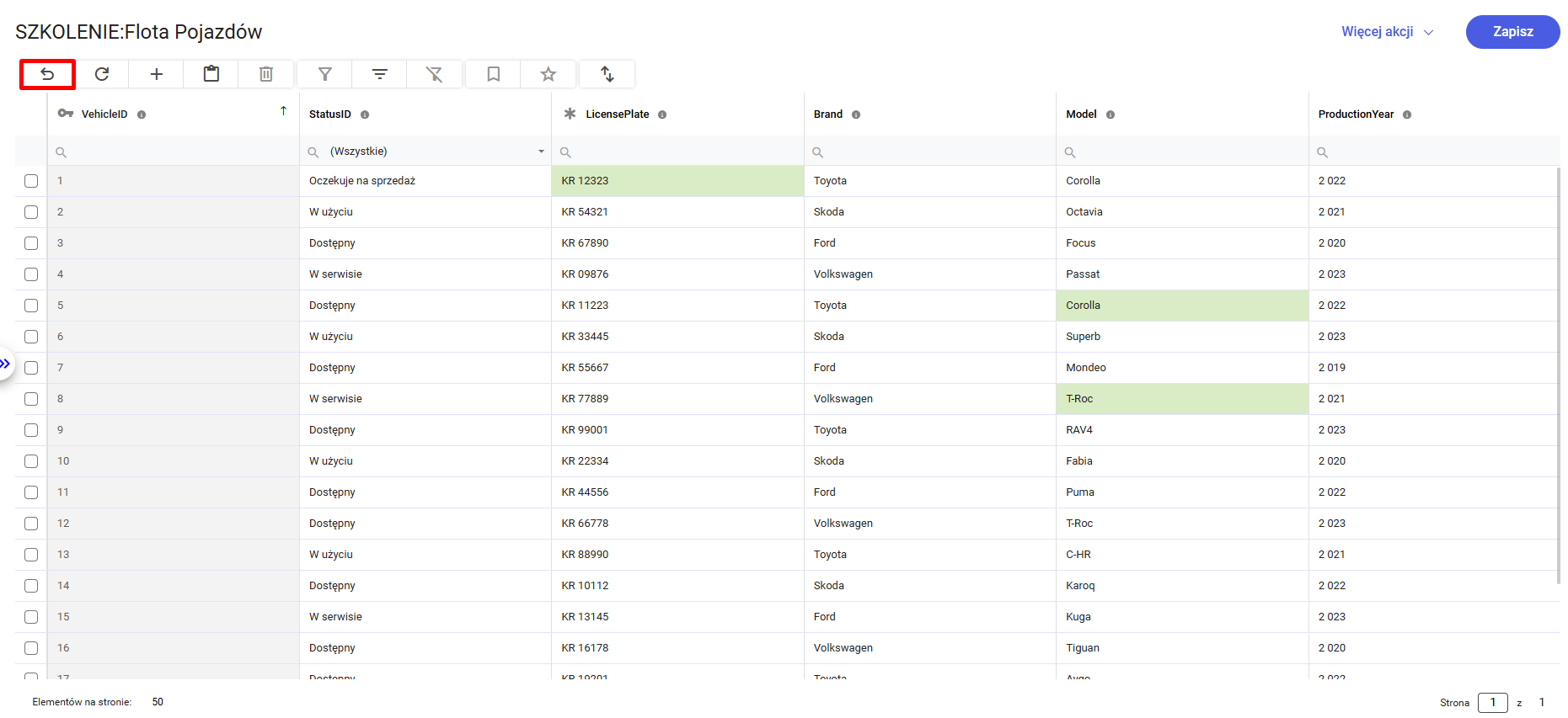 Anulowanie wprowadzonych zmian jest możliwe za pomocą przycisku . Wszystkie zmodyfikowane dane zostaną cofnięte do ostatnio zapisanego stanu.