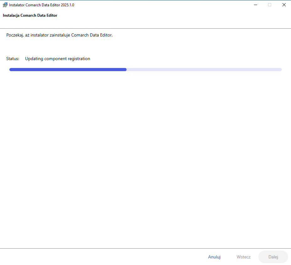 Po naciśnięciu przycisku „Dalej” rozpocznie się proces instalacyjny, który wyświetli okno z paskiem postępu.